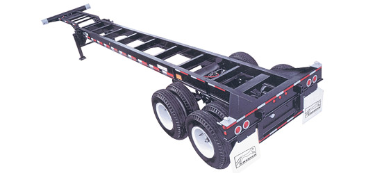 Carries one 20 ft or two empty 20 ft or one 40 ft. ISO container. Meets all DOT, TOFC, AAR, FMVSS, ANSI, SAE and TTMA specifications in effect at the time of chassis manufacture and applicable to operation in the United States.