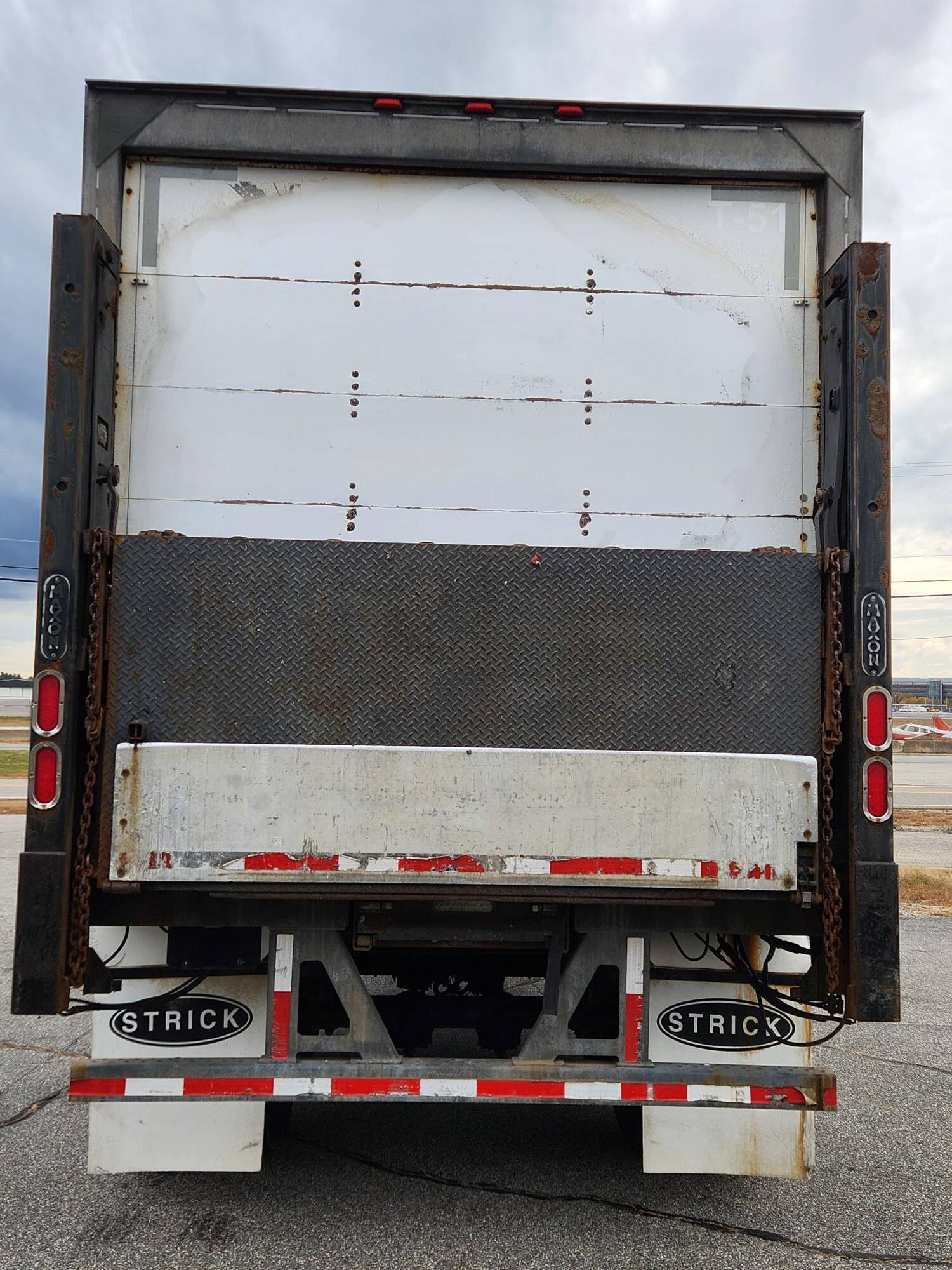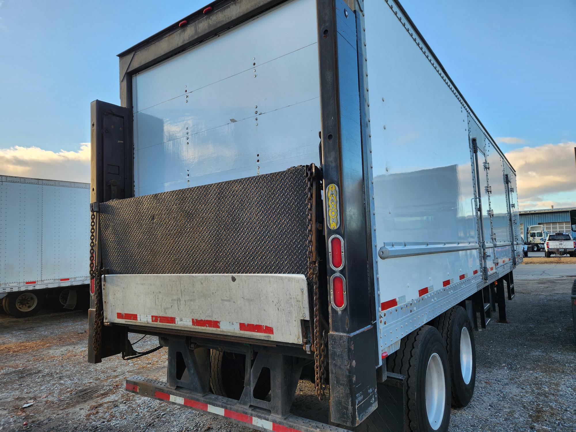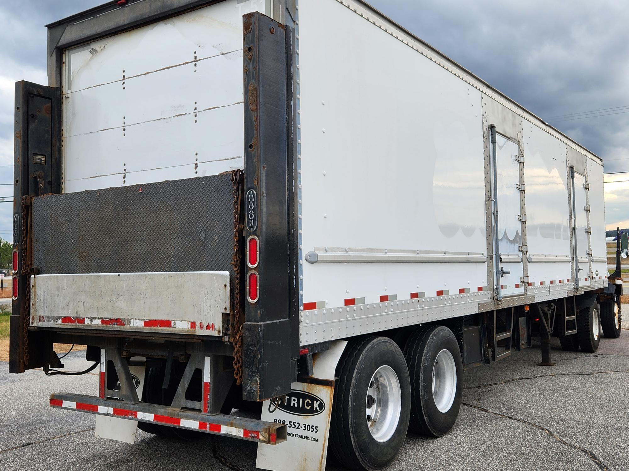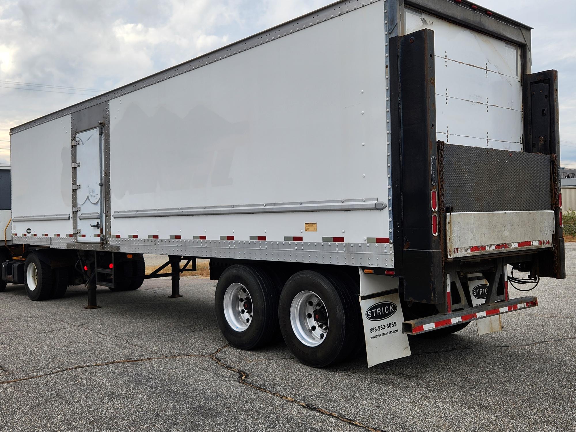 Quantity of (2) 2011 model Strick 36′ beverage delivery trailers. 102” wide x 12’6” OAH, 3/8” SS pick up coupler plate, Roll-up rear door, (2) curbside doors and (1) roadside door. Side door threshold plates and stainless steel side door framing, Steel scuff liner, translucent roof, ceiling scuff protection. 12” roof bow spacing, Rub rail on HD 1” FRP side walls, 1.5” laminated hardwood oak floors, 8” crossmember spacing, Tandem axle spring suspension, 11R22.5 on alum. outer wheels, Maxon BMR55 Rail gates operational, 5500# capacity, S/P $ 15,000. each